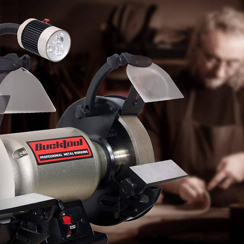 The 400W LED Lighted 6” bench grinder - TDS-200C4HL is the ideal tool for every workshop. The rigid steel construction and the LED work lights provide a good basis for your projects. With the coarse K36 grinding wheel and the medium K60 finishing wheel, is ideal for all grinding, sharpening and buffing tasks. Standard equipment includes a K36 and K60 grit grinding discs and wire wheel for maximum versatility. Ideal for cleaning and preparation for all soldering and welding projects in addition to a variety of workshop jobs where a bench grinder proves invaluable. Incorporating a cast iron base and led lights, these bench top grinder/ polishers are the perfect workshop partner for the discerning user.