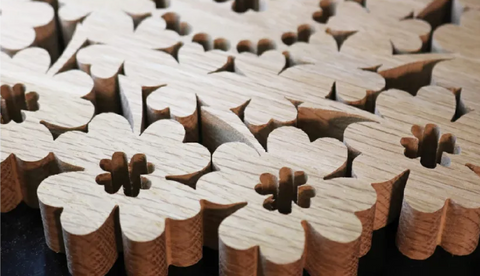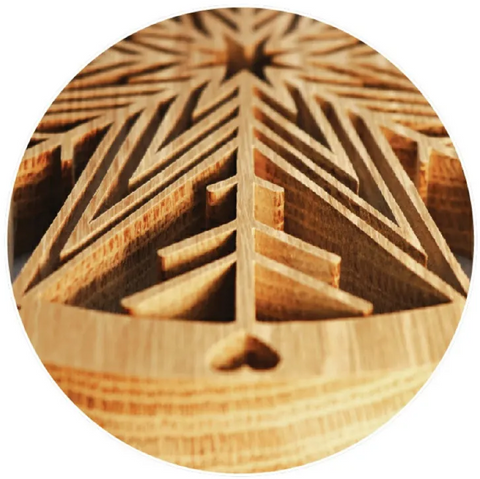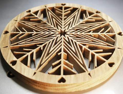 One aesthetic choice you can make is to use wood pieces with strong , visible grains like this piece of 3/4"”(19mm)thick oak used for the Starflake Trivet. I prefer oak over most other woods, mainly because of the availability in my area, but many hardwoods can be used. I also love the wood grain that is often available when using oak. The grain adds a very nice texture and is visually pleasing. |