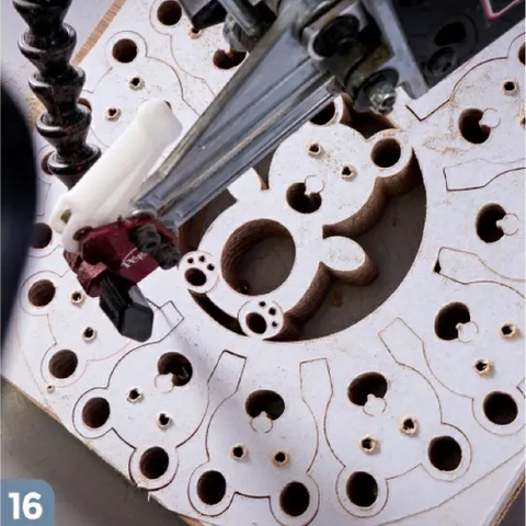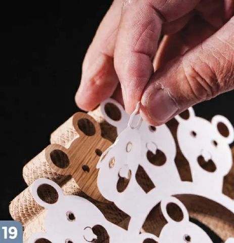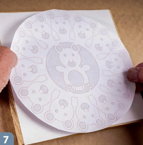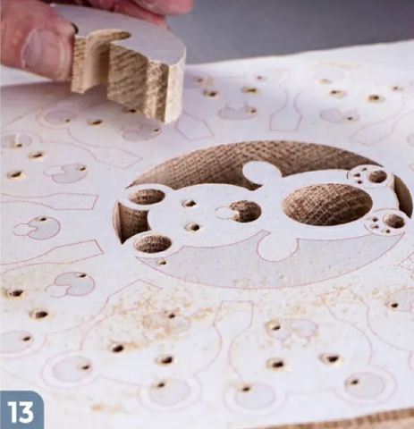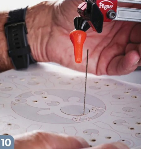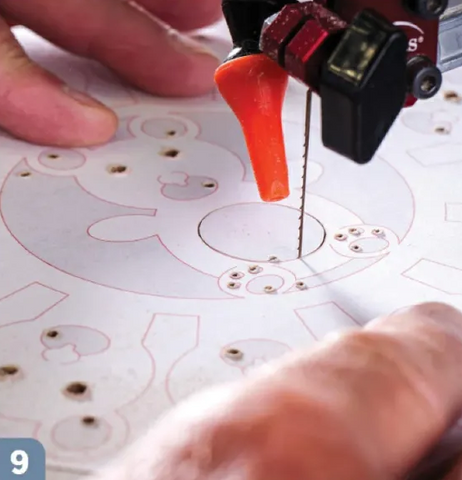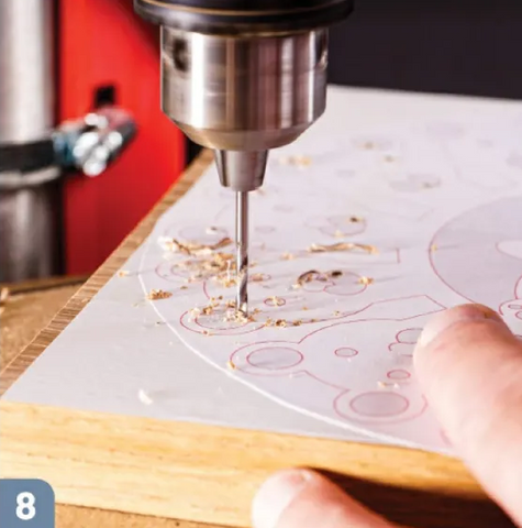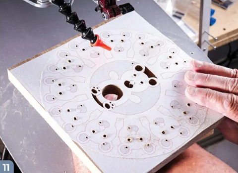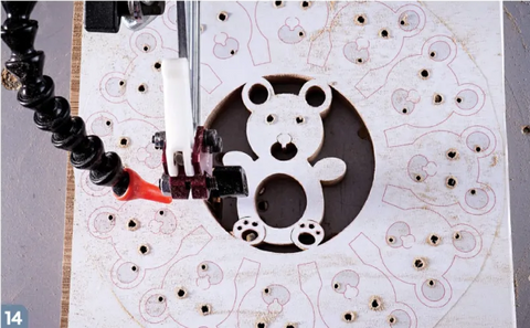 Drill all the pilot holes, including the bear eyes of the desired diameter. if possible , use a drill bit to match the size of the eyes—the drill bit diameter suggested for the eyes is 1/8"(3.2mm).Then sand the back side of the blank to remove the rough edges created by the drill bit.