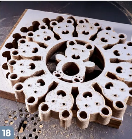 Here is the finished central bear. Make sure to periodically brush away excess sawdust so that it doesn't get in your way as you proceed.