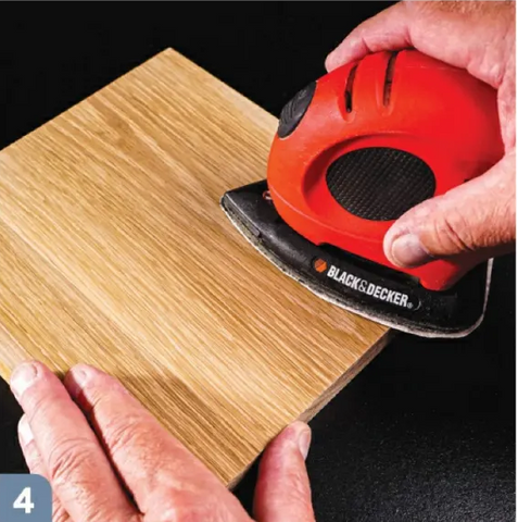Sand the wood blank on both top and bottom. l used a palm sander, but you can also use sandpaper.