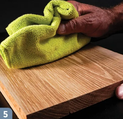 Clean the wood thoroughly with a tack cloth, removing all dust and ensuring you have a clean, smooth surface prior to attaching the contact paper and pattern in the following steps.