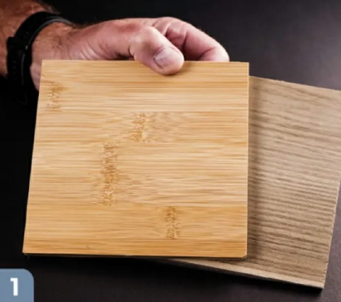 Prep your pieces of wood. Here, l've used bamboo (top) and sassafras.
