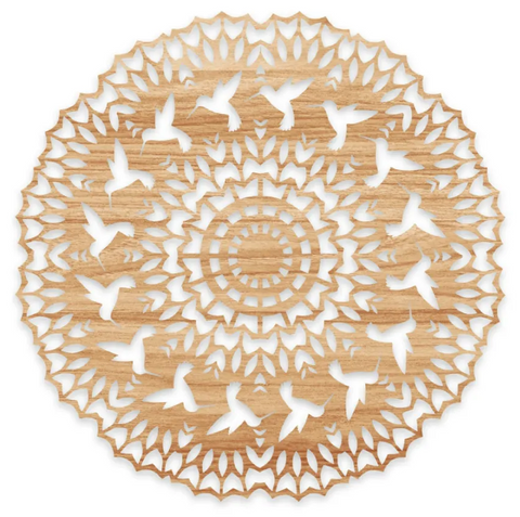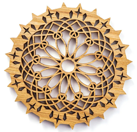 Recommended wood: Hardwood of choice,1/2"—3/4"(13-19mm) thick, 8 1/2”(21.6cm) square Recommended drill bits:1/16” (1.6mm) Recommended blades: #5 reverse skip-tooth or reverse tooth Notes/special instructions: Only an even and steady hand is needed for all interior cuts. Recommended finishing: Danish oil or oil of choice. |