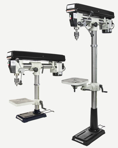 The floor models are the big boys. These powerhouses will drill holes in just about anything without the bit stalling. They will drill holes that can be very dangerous or impossible to drill by hand. Floor models have bigger motors and larger chucks for drilling larger holes. They have a much bigger throat clearance than bench models so they will drill to the center of larger material.