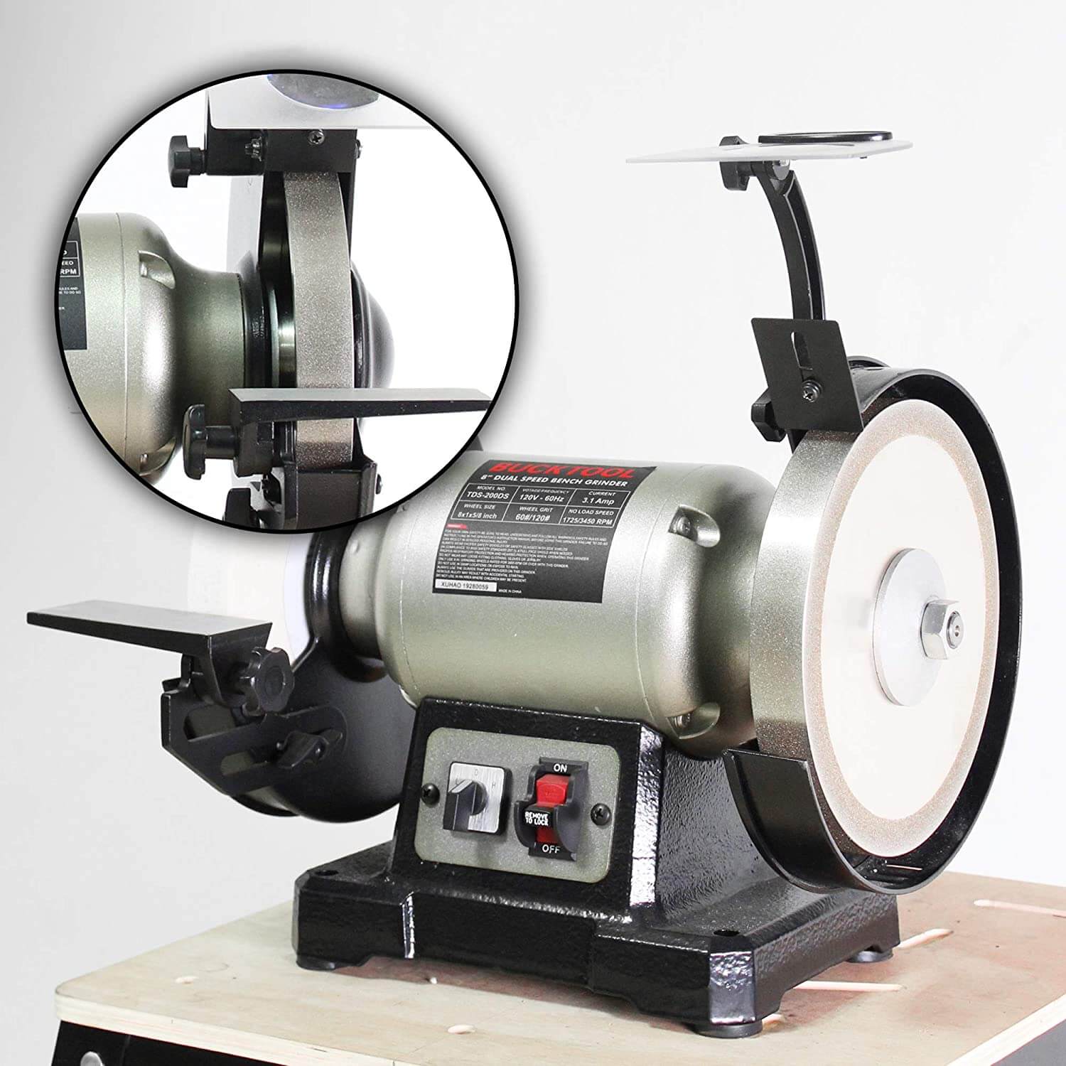 • Universal Match: Designed for use with 8-inch bench-type grinders 3600RPM (Maximum), work great on Bucktool bench grinder TDS-200DS and TDS-200C4HL, can also be matched with other brands 8” bench grinder and you have not to worry about its use restrictions