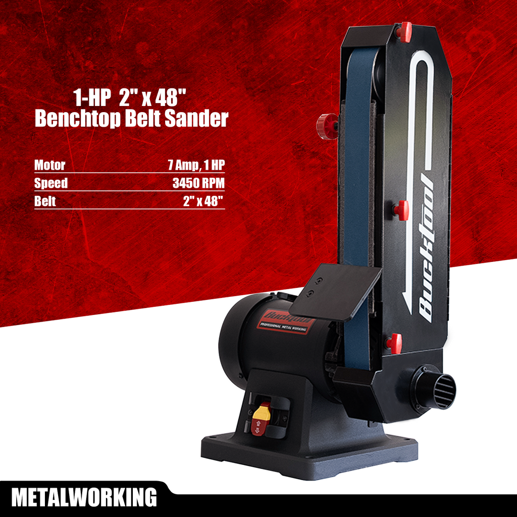 Maximize versatility with the Dual-Table Design, allowing instant switching between flat stock removal and contour grinding. Featuring a precision aluminum drive wheel for smooth tracking and a serrated rubber contact wheel for superior grip and vibration dampening, this 2x48-inch system guarantees powerful, steady performance essential for knife making, metal shaping, and detailed finishing work.