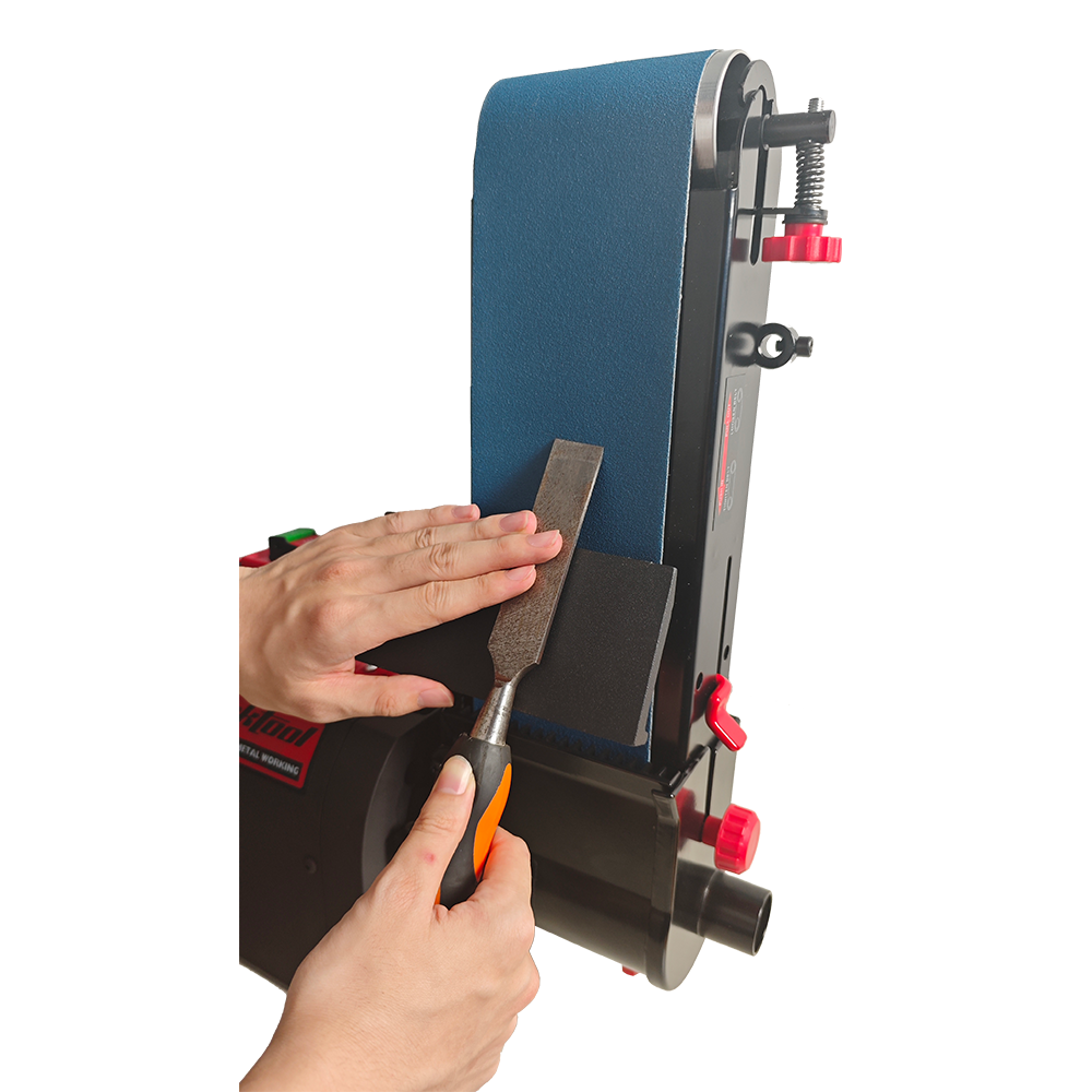 Comes with a removable knife grinding jig that installs easily on the sanding belt platen — ideal for sharpening blades, chisels, and tools. Detach it quickly when not needed. -
