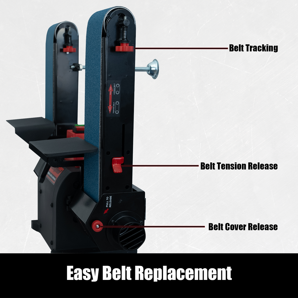 Minimize downtime with our proprietary two-step quick-release mechanism. Designed for high-frequency users, the belt can be swapped in seconds with two simple pulls. The smooth, intuitive motion ensures your workflow remains uninterrupted during grit transitions.