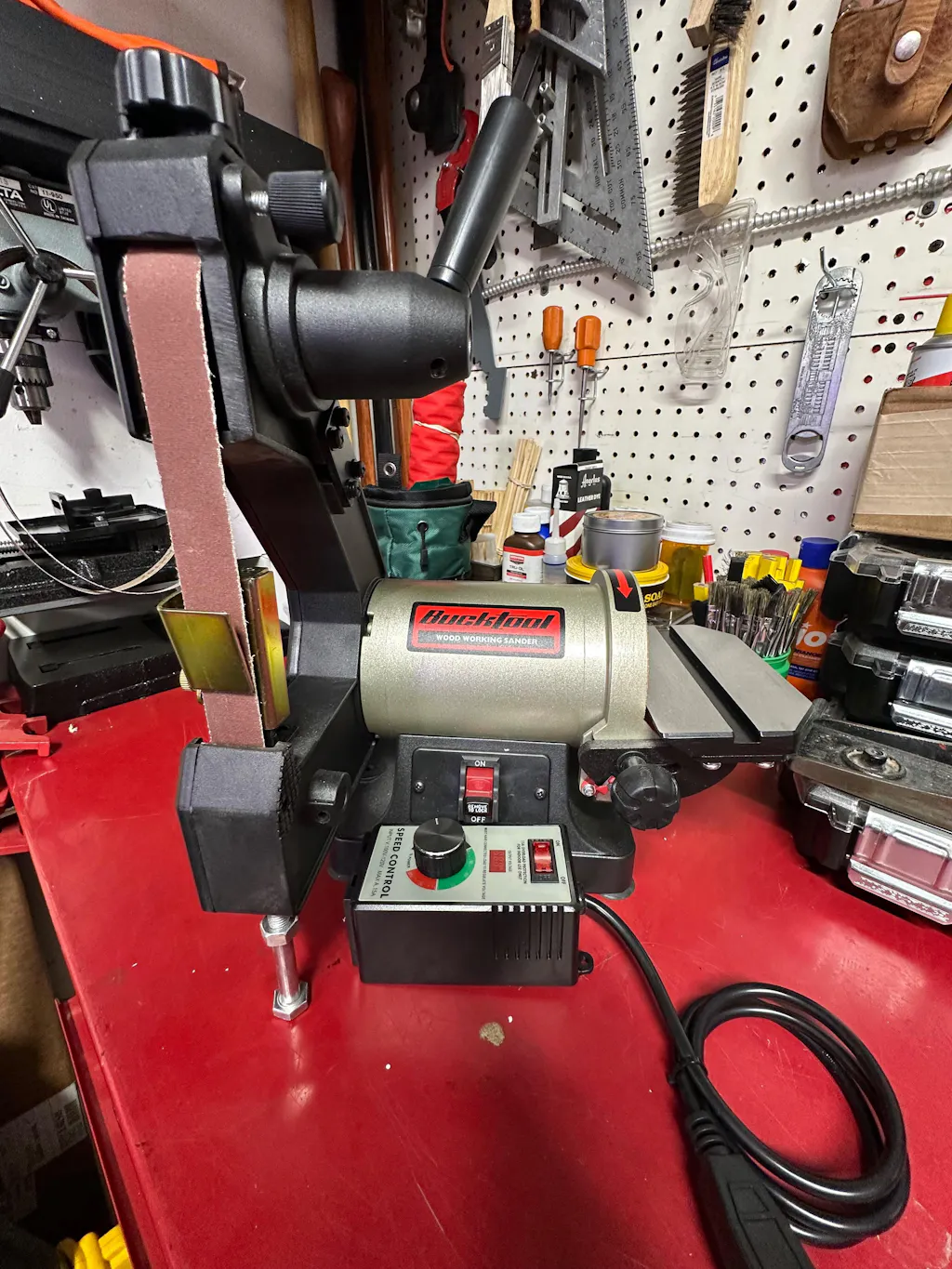 User-Friendly Design: The Bucktool 1x30 belt disc sander features a convenient one-button belt cover release and built-in wrench storage, making setup and maintenance simpler than other sanders.