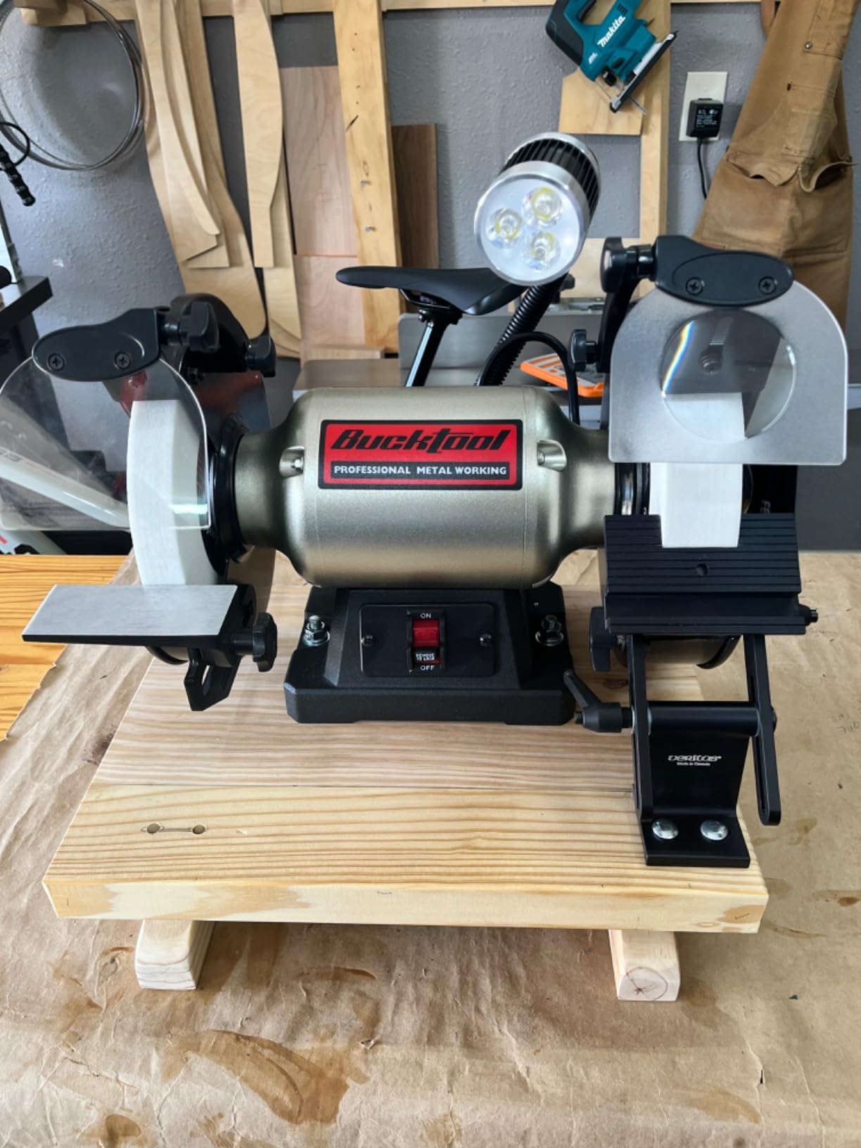 The grinder worked as expected out of the box. Of particular note are the extra wide fine grit wheel (1.5 inches) and the lack of vibration. The wheels were installed and seemingly pre-balanced.