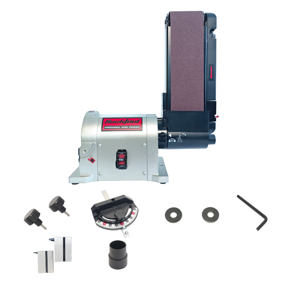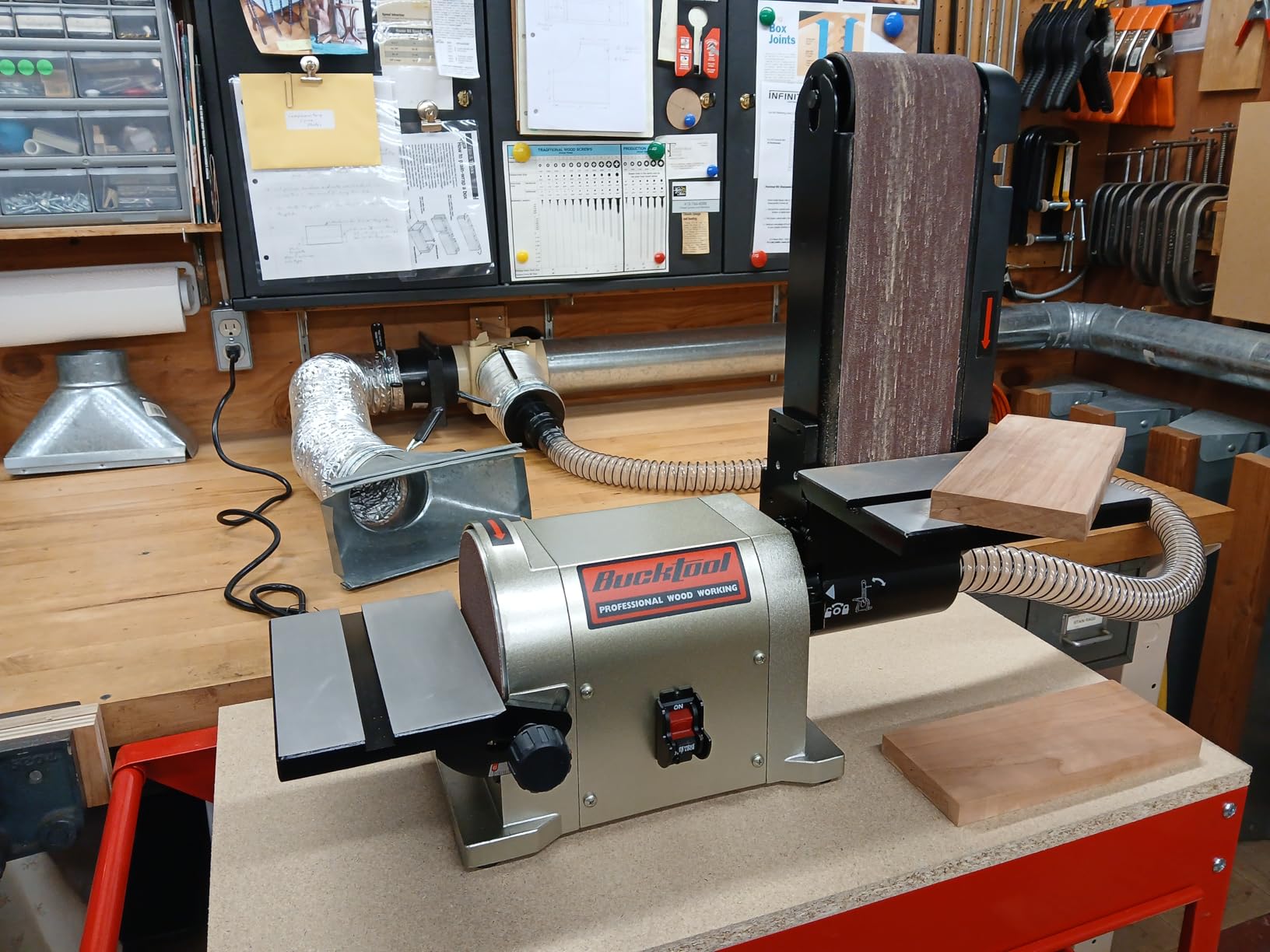 Muy buena lijadora, mucha potencia, silenciosa y facil de armar.Yo estoy en Argentina y llegó muy bien embalada y protegida. Es más grande de lo que pensaba, es para dejarla fija en una mesa.Le conecté un sistema de aspirado y la extracción de polvo funciona muy bien Funciona a 120 volts así que compré un transformador a 220 v de 750 w y funciona sin problemas. La uso para lijar madera, muy recomendable.